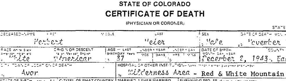 A search began the next morning, made harder by an overnight layer of new snow. Another day later, a helicopter pilot from a Denver TV station first sighted the wreckage. He dropped close to the ground so his propeller could dust off some of the snow. He alerted rescue crews. Military helicopters came from nearby Fort Carson, which discovered there were seven dead, no survivors.