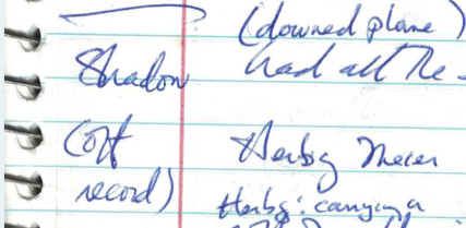 We’d had lunch together a number of years before, but I couldn’t remember if I’d asked him anything. But in one of the consecutive spiral notebooks I used for all my interviews in the story, I found my notes of it, written down just afterwards.