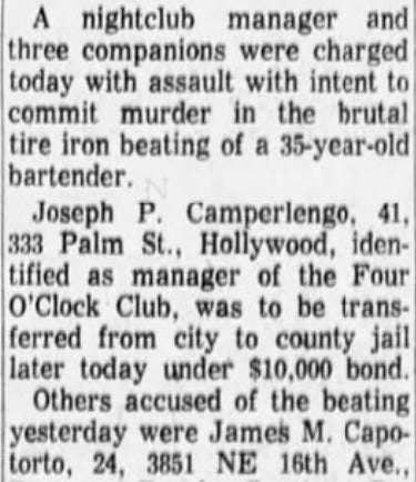 Capotorto had worked as a bouncer for Camperlengo’s club as far back as 1967. That year, the two were charged with beating a bartender with a tire iron: